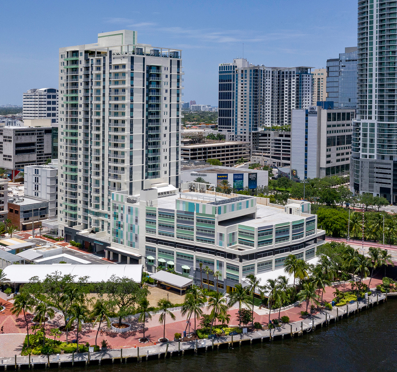 A new 25-story, 260-unit luxury apartment building with ground floor retail and re-imaging of an existing 7-story parking garage on a 1.08-acre property in the heart of downtown Fort Lauderdale.