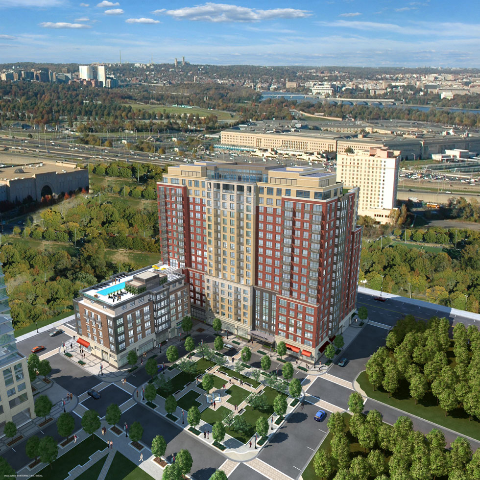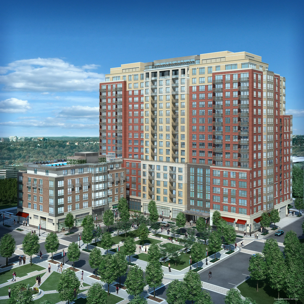 This Silver LEED project includes 411 units of rental apartments in an 18-story building with ground floor retail.