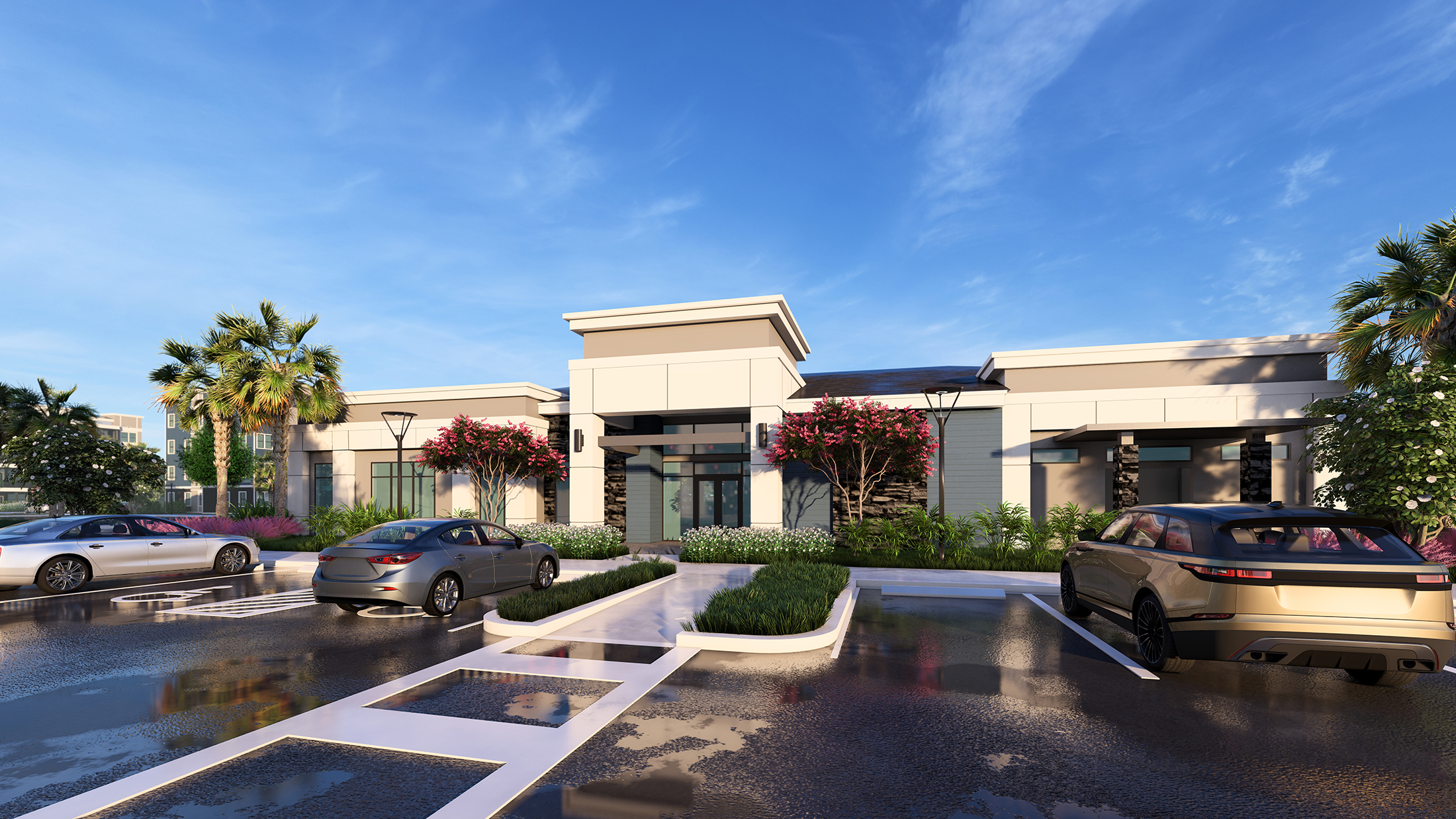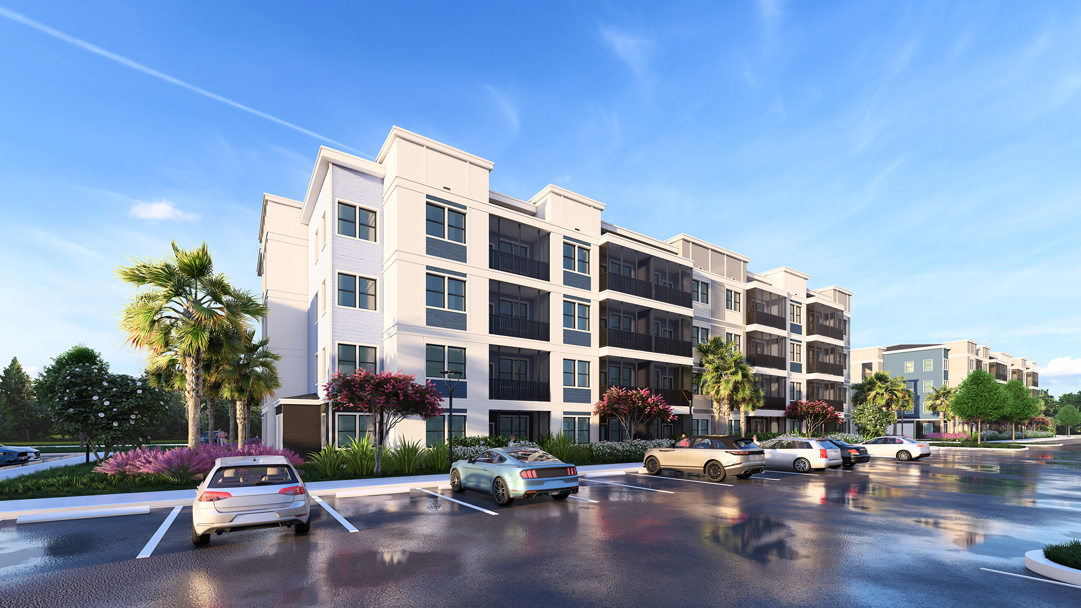 A 320-unit apartment community consisting of seven 4-story buildings with two building type and a 7,500 SF Clubhouse on a 12-acre parcel that is part of a master planned Space Coast Town Center Development.