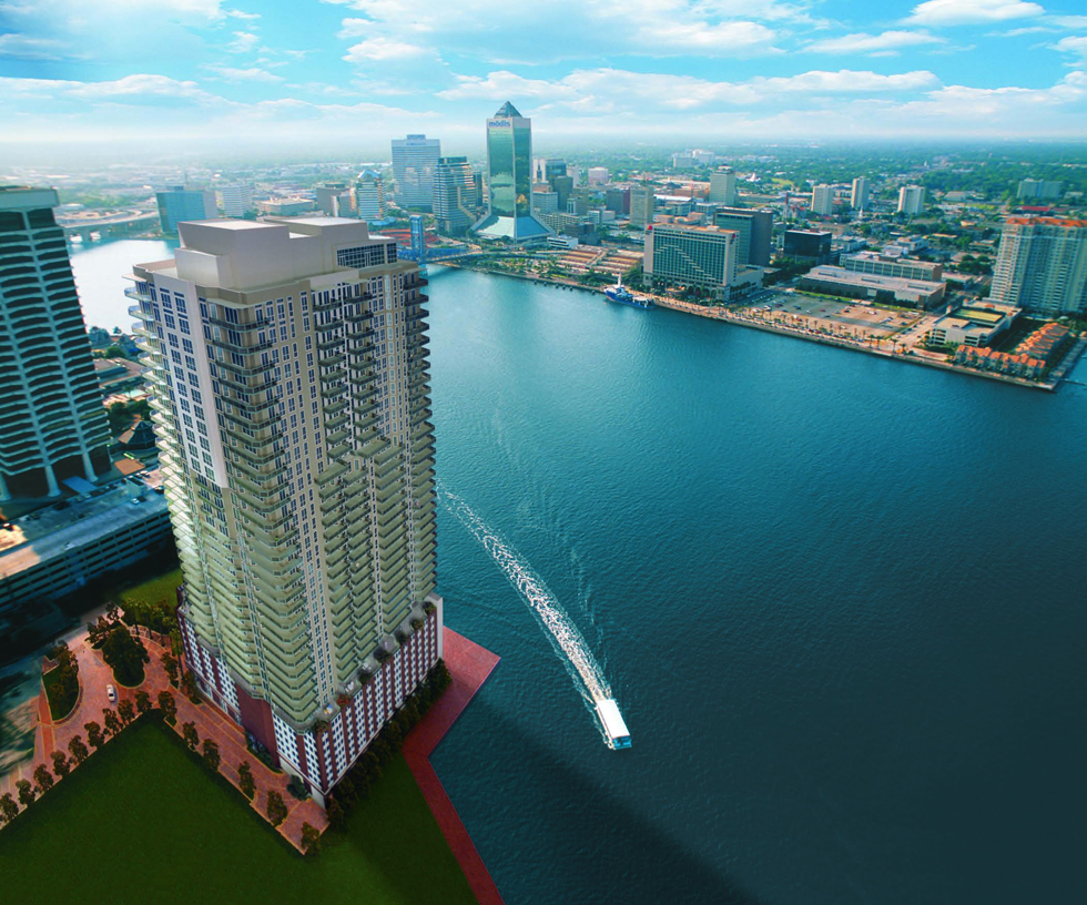 The 39-story condominium tower with 243 units over a 495-car garage, is the second phase of the St. John’s planned unit development in Jacksonville, Florida, for American Land. Located on the South bank of St. Johns River, the mixed-use development includes three residential towers.